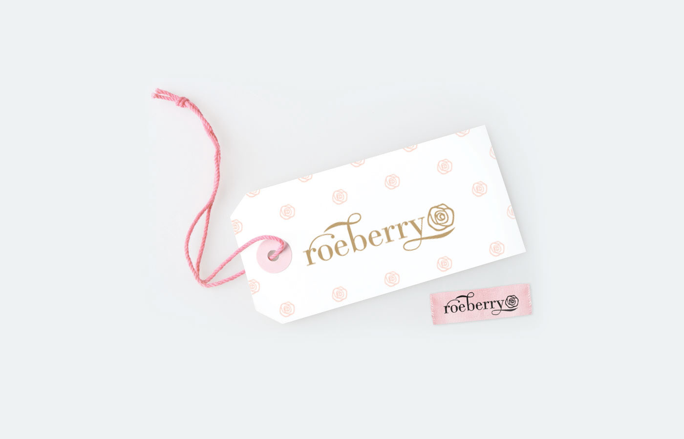 Logo and tags for Roeberry, a bespoke children's clothes business.